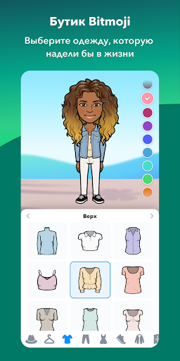 Битмоджи функционирует как ваш личный эмодзи. Создайте отличный мультяшный аватар, выберите из растущей библиотеки настроений и наклеек - с ВАМИ! Приложение имеет множество опций настройки, которые помогут вам придать форму своей внешности. Вы можете изменить внешний вид своих волос, цвет глаз, размер, брови и даже одежду, которая появляется при отправке аватара кому-то еще.